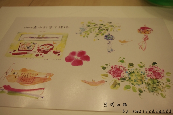 老師的講義上有風鈴、有鯉魚旗、有貌似櫻花的花、還有日式美食~
