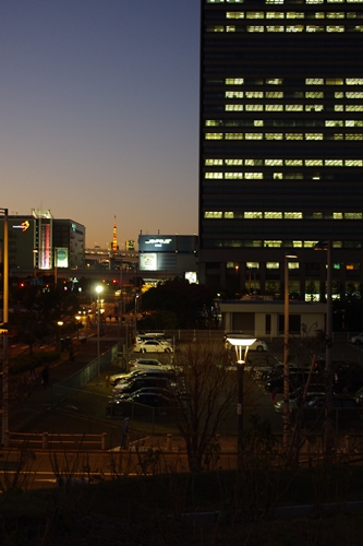 電車上拍下遠方橘紅色東京鐵塔