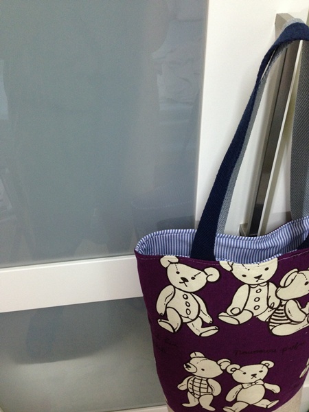 太喜歡這塊小熊布,所以又用他做了個長形包給表嫂:)
