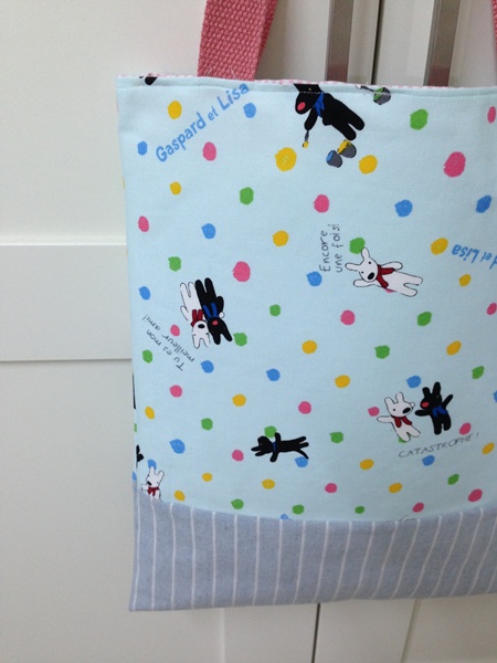 另外下方用了厚一點似牛仔布的條紋布做拼接~是不是也好搭呀~