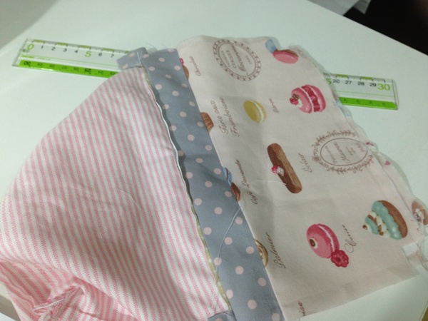 這天用了坐飛機來的馬卡龍布要做個拉鍊小包送同事,當生日禮