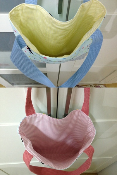 為了怕姐妹倆拿錯,內裡及提把的部份用不同顏色做了區隔